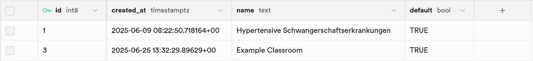 classroom. You can find the ID in the first column of theclassroomstable. - Add the